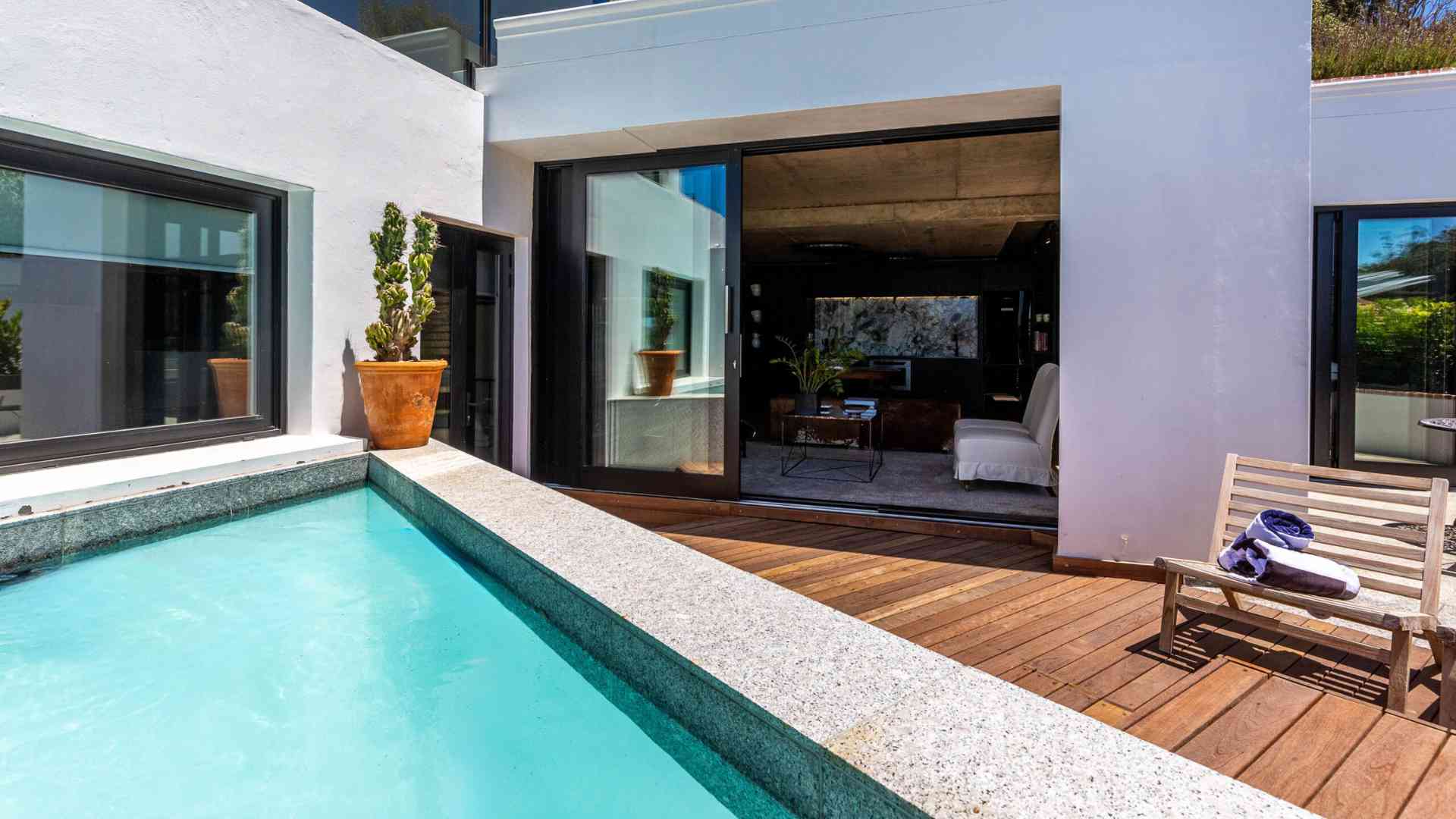 The Pool Suite, nestled alongside our outdoor pool, offers a tranquil oasis to unwind and soak up the warm African sun. 2 Bedroom suite. Long-term rental option with all amenities – lift opens up in the foyer.